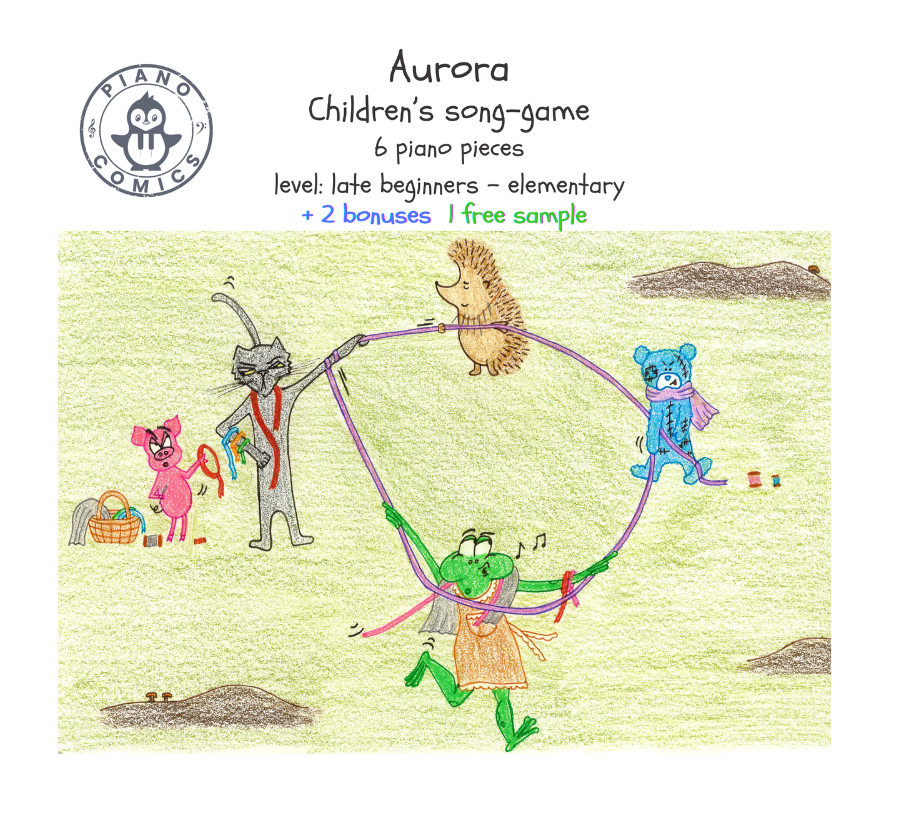 The song-game ‘Aurora’ is a simple and short children’s song-game that can be used in many forms inside the piano classroom as a canon, menuet, composition, variation et al., as well as a music classroom as ‘body percussion’ game, creating a 2nd voice, chasing-canon, composing new lyrics, pantomime et al.