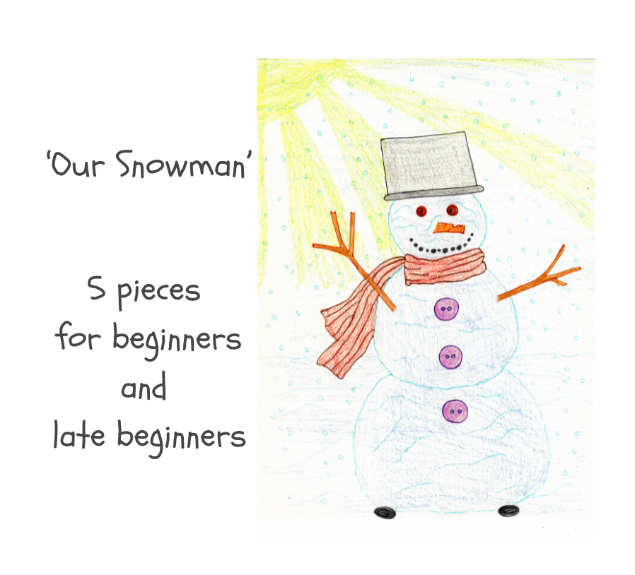 ‘Our Snowman’ by Piano Comics is a bundle of five pieces about winter: two for beginners and three for late beginners. Four pieces are written in c-major in one hand position with no finger turns and one in a-minor. Here you can download the free sample. Here you can listen to all pieces and watch the comics telling the story of five heroes – animal friends- building a snowman.