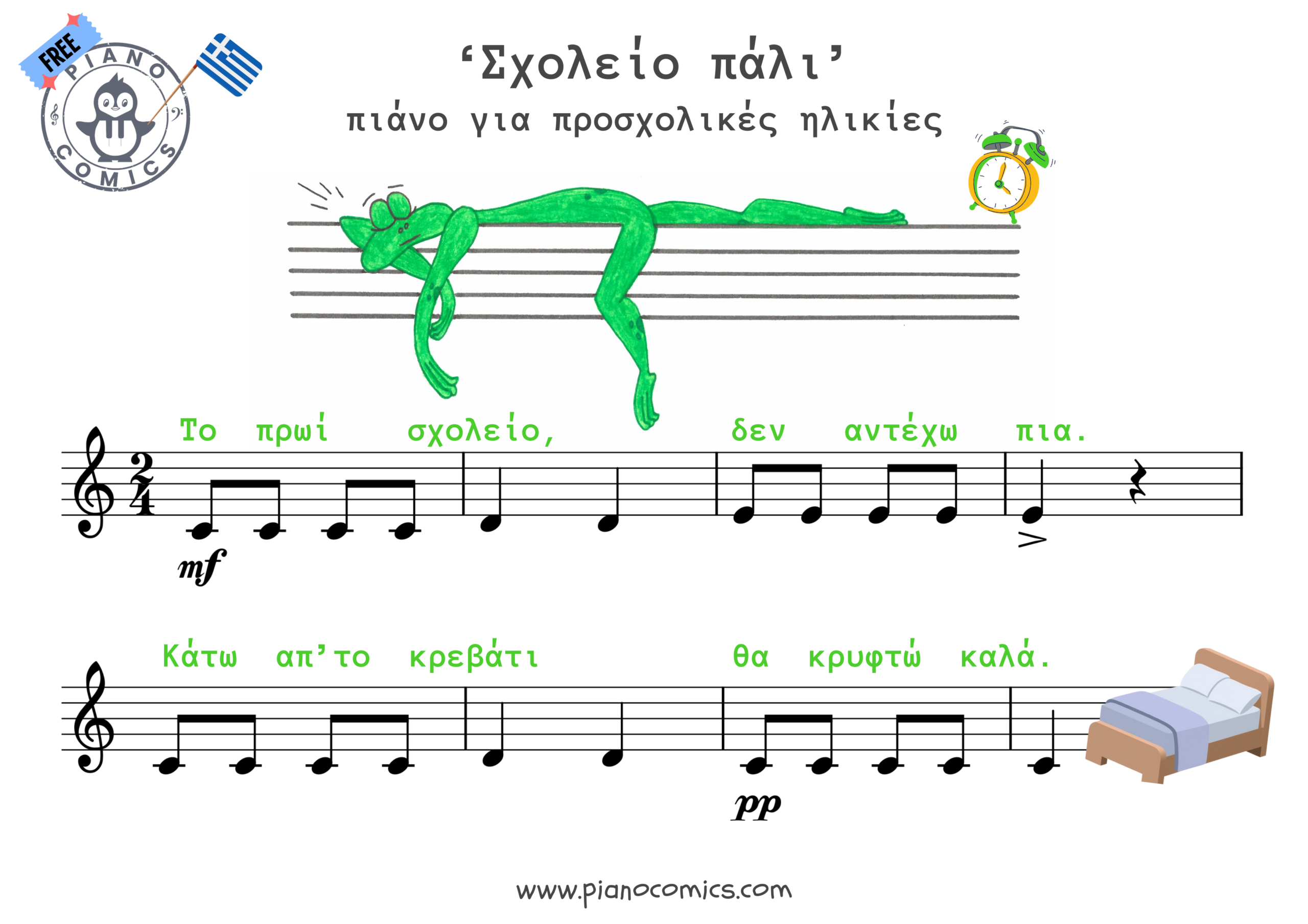 ‘ΣΧΟΛΕΙΟ ΠΑΛΙ’ ΕΝΑ ΤΡΑΓΟΥΔΙ ΓΙΑ ΠΡΟΣΧΟΛΙΚΕΣ ΗΛΙΚΙΕΣ ΠΟΥ ΜΑΘΑΙΝΕΙ ΔΥΝΑΜΙΚΕΣ ΚΑΙ ΤΙΣ 3 ΠΡΩΤΕΣ ΝΟΤΕΣ ΣΤΟ ΠΙΑΝΟ ΑΠΟ ΤΗΝ Piano Comics